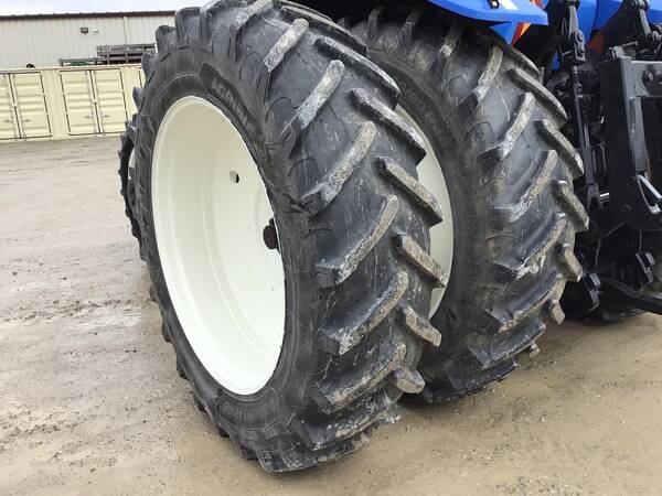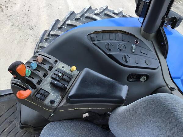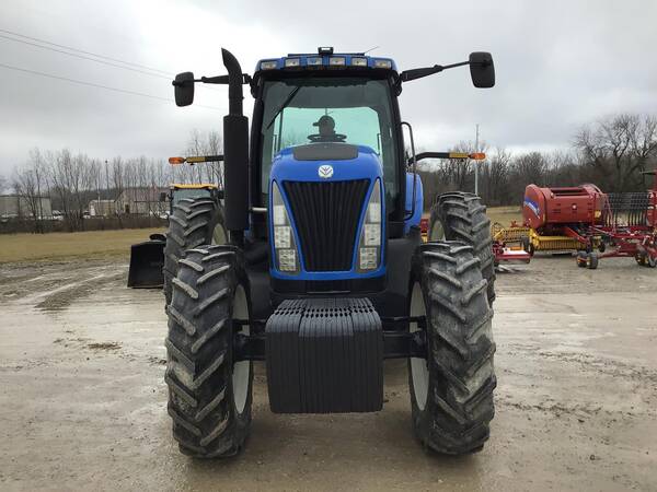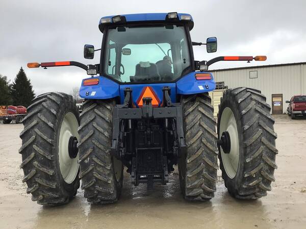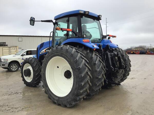 2004 New Holland TG255 4WD with 5027.6 hours. Looks very nice and operates well. Cab/Heat & air. 255 engine HP producing 215 PTO HP with a 18 speed full power shift transmission. 18 forward gears and 4 reverse. 3 point hitch with quick hitch & fender controls. 540/1000 rear PTO & 3 rear hydraulic remotes. 21 front weights & ground radar. Very good 480/80R46 rear duals & 380/85R34 front tires.