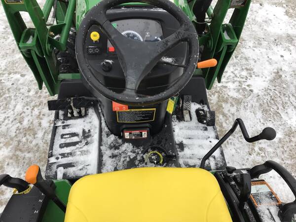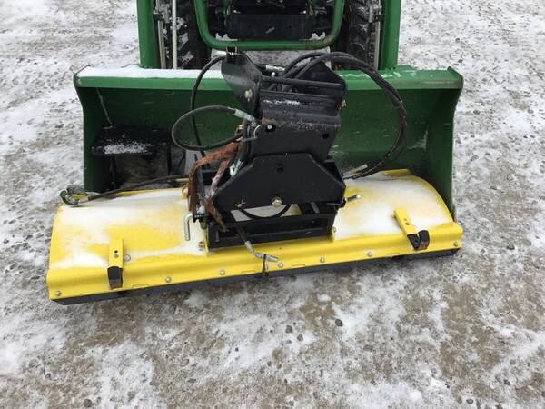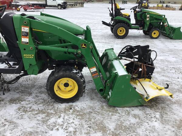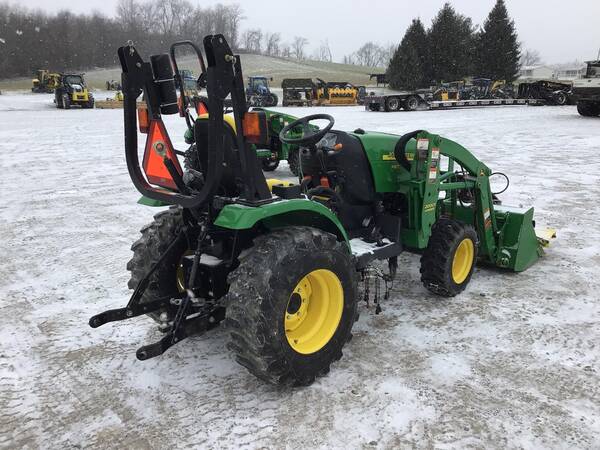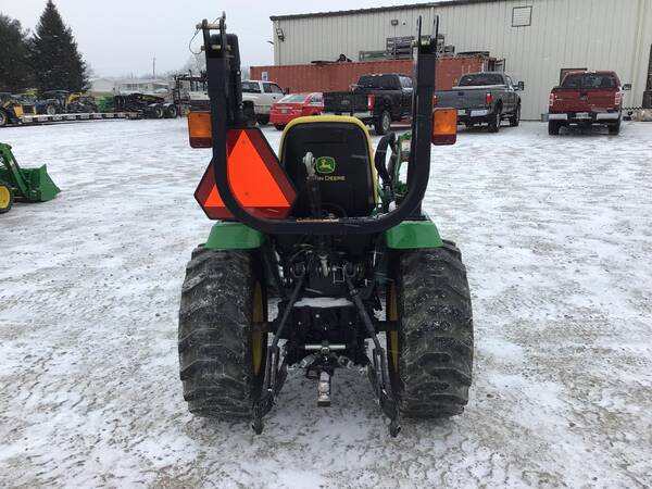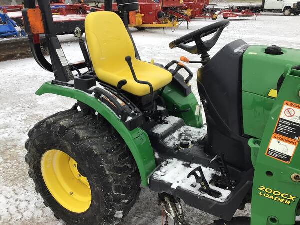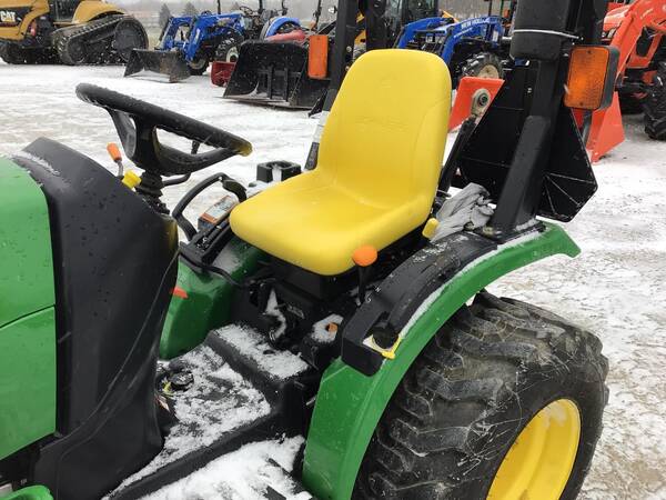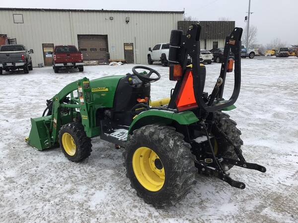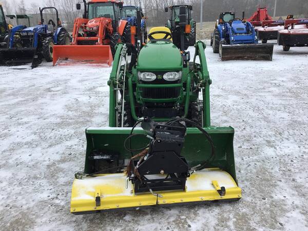 2011 John Deere 2320 4WD with John Deere 200CX loader and front hydraulic snow blade. Only 211 hours. Excellent condition. Operates well. 24 HP Yanmar diesel producing 18 PTO HP with a 2-range hydrostatic transmission. 3 point hitch, 540 rear PTO & folding ROPS for rollover safety. 12-16.5 rear R4 tires & 23X8.50-12 front R4 tires.