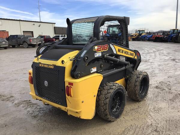 New Holland L218 Skid Loader with 1285.5 Hours. Good condition. 60 HP with a 2-speed transmission. Hand controls, 1,803 lb operating capacity, 6243 operating weight & a tipping load of 3600 lbs.